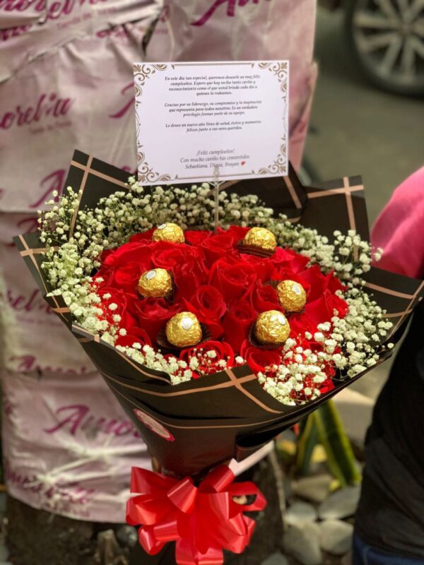 | Tipo de Arreglo | Bouquets de rosas y chocolates |